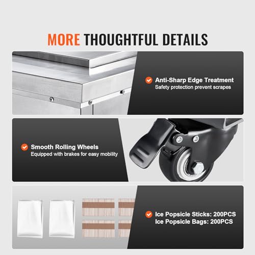 VEVOR Kommerzielle Eismaschine, 2 Formen-Set – 52-teiliges Eismaschine zum Herstellen von Eis am Stiel, Eislutscher aus Edelstahl, Eismaschine für Eisstäbchen für Bars, Cafés, Milchteeläden