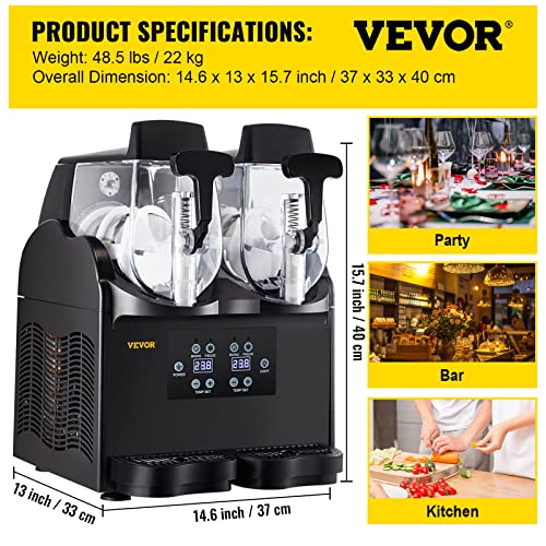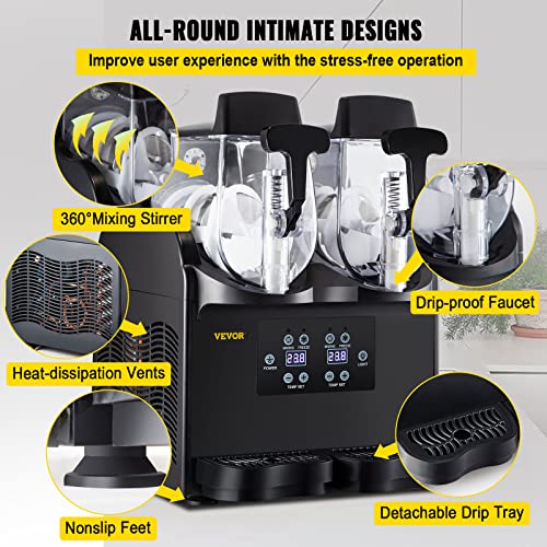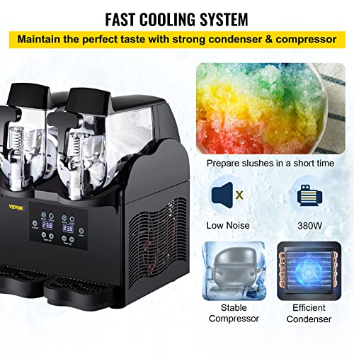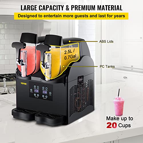 VEVOR Kommerzielle Slusheis Maschine, 2 x 2,5 L Slush Eismaschine 380 W 220 V Slusheis Eismaschine, Slushie Maschine mit…