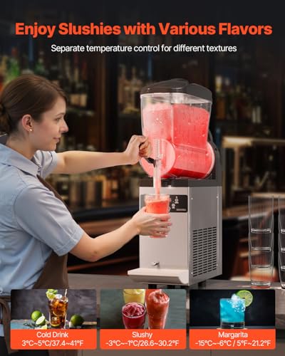 Für verschiedene Getränke: Diese verbesserte kommerzielle Slush-Maschine verfügt über einen einstellbaren Temperaturbereich von 5 bis 50 °F (-15 bis 10 °C), sodass Sie die Weichheit oder Härte Ihrer Getränke steuern können. Für kalte Getränke: 3 bis 5 °C (37,4 bis 41 °F); für alkoholfreie Slush-Getränke: -3 bis -1 °C (26,6 bis 30,2 °F); für alkoholische Getränke: -15 bis -6 °C (5 bis 21,2 °F). (Empfohlener Zuckergehalt: ca. 13 %, Alkoholgehalt: unter 13 %).