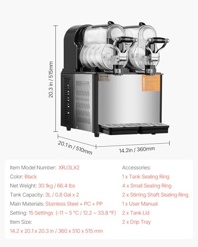 VEVOR XRJ3LX2 slush eismaschine, Edelstahl + ABS + PC