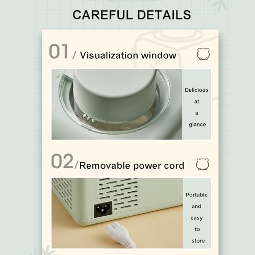 【Einfach zu bedienen】: Verwenden Sie unsere humanisierte automatische 500-ml-Mini-Frucht-Softeismaschine, um 4-5 Kugeln Ihres Lieblingseises mit der einfachsten Knopfbedienung herzustellen. Gießen Sie einfach Ihre Lieblingszutaten hinein, öffnen Sie sie und sehen Sie zu, wie sie sich in wenigen Minuten in ein cremiges, köstliches Softeis verwandeln.
