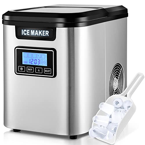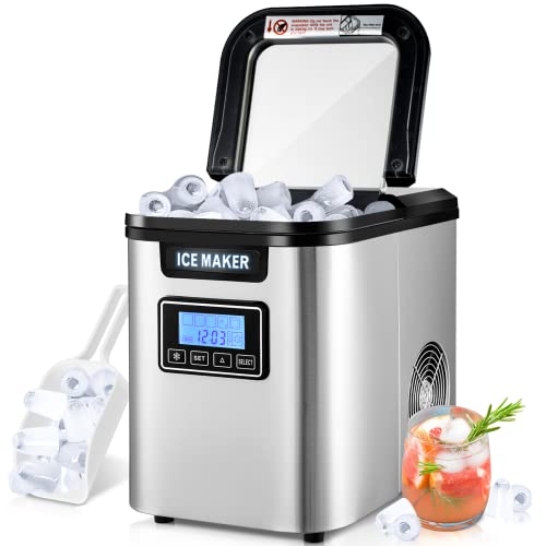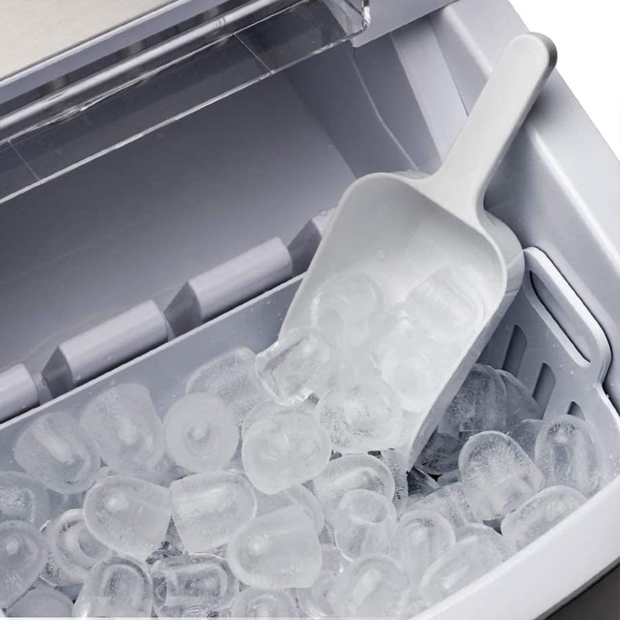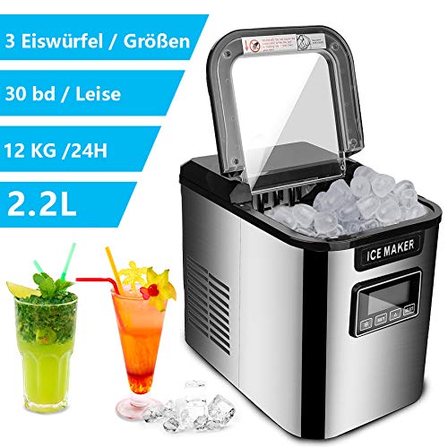❄【3 Eiswürfelgrößen】Mit den tragbaren Eiswürfelmaschinen können Sie 3 Eiswürfelgrößen(L/M/S) nach Ihren persönlichen Vorlieben auswählen. Der Eiswürfelbereiter misst 36 x 25 x 33 cm und wiegt 9,5 kg. Unsere tragbare Eiswürfelmaschine ist ideal für Arbeitsplatten. Keine Vorbereitung, sofort Eiswürfel produzieren, für einen besseren Geschmack zu Cola/Wein/Whisky/Saft/Kaffee hinzufügen. Anzug für Camping, Tailgating, Bootfahren, RV-Reisen.