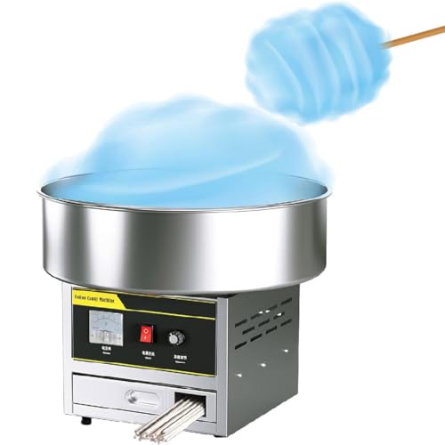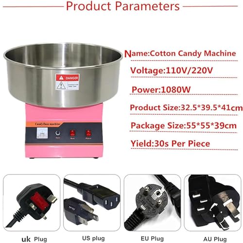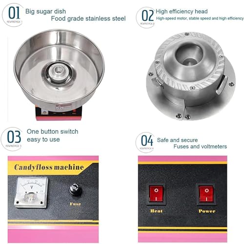【HOHE EFFIZIENZ】 Unsere kommerzielle Zuckerwattemaschine hat eine Leistung von 1080 W, arbeitet mit 220 V und verfügt über einen Aluminiumausgang für gleichmäßige Erwärmung. Das Aufheizen dauert nichtsdestoweniger wenige Minuten und Sie können bis zu 2-3 Portionen pro Minute zubereiten. Es ermöglicht die schnelle Produktion frischer Zuckerwatte vor Ort und stellt abgehärtet, dass die Kunden die flauschige, süße und köstliche Zuckerwatte genießen können.