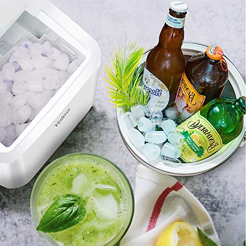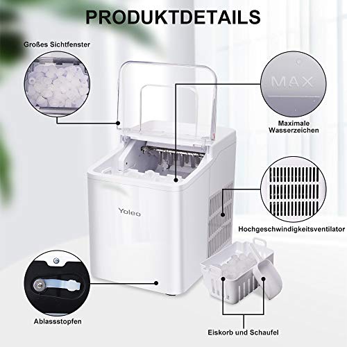 🍨【LEISE UND KOMPAKT】23x32x30cm, perfekt für jede Arbeitsplatte. YOLEO Eiswürfelmaschine hat eine elegante weiße Oberfläche, die sich problemlos in jede Küche oder Familienbar integrieren lässt. Veranstalten Sie das perfekte Sommerfest! onhe großes Geräusch zu machen.