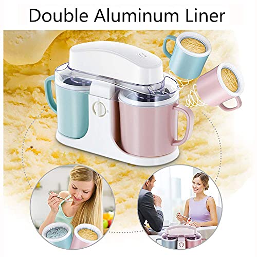YYAI-HHJU Twin Cup Ice Cream Slush Maker Sorbet Maker Maschine 1L Selbstgemachtes Gelato Frozen Yogurt, Haushalt…