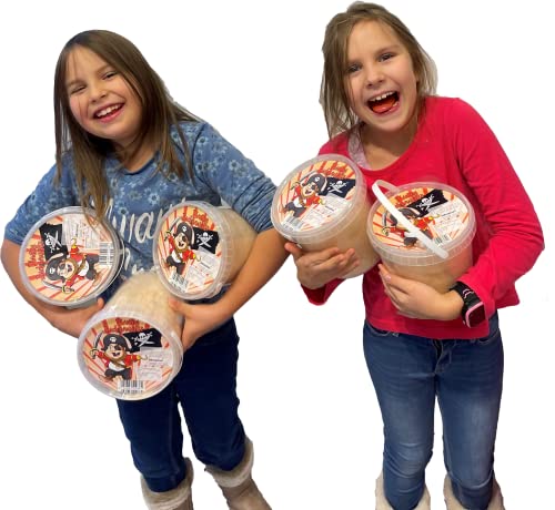 1.Süße Vielfalt: Genießen Sie unsere Piratenzuckerwatte im Eimer – ein bunter Mix aus fruchtiger Zuckerwatte, perfekt für Naschkatzen. ARR!